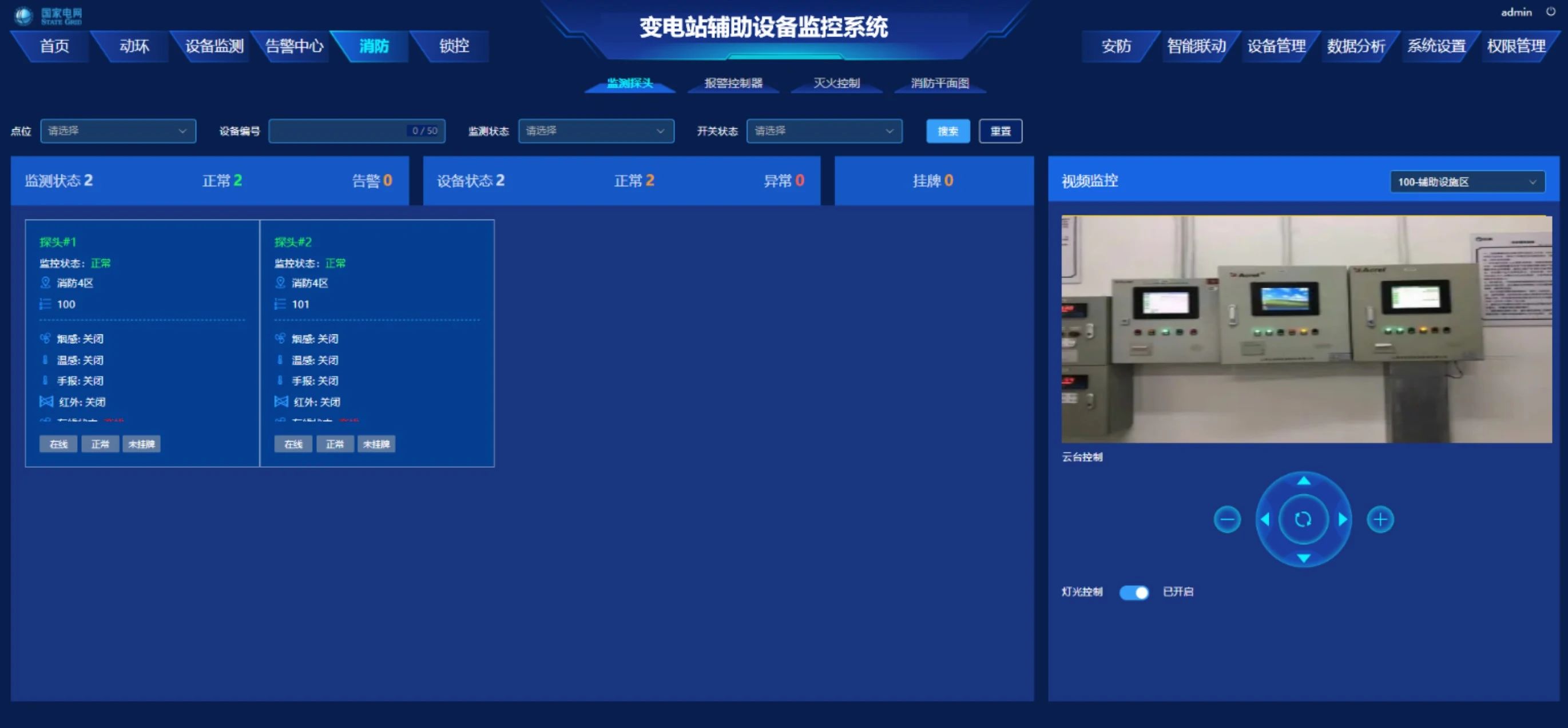 對變電站內(nèi)的消防設(shè)備進(jìn)行實時監(jiān)控,包括探頭、煙霧報警器、溫度傳感器等,及時發(fā)現(xiàn)火災(zāi)隱患,對變電站內(nèi)的滅火設(shè)備進(jìn)行控制,提高變電站的安全性。