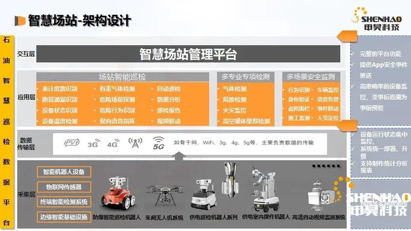 申昊科技一直致力于設(shè)備檢測及故障診斷,為工業(yè)設(shè)備安全運行及智能化運維提供綜合解決方案。申昊科技研發(fā)的防爆型輪式巡檢機器人以及無人機巡檢系統(tǒng)在油氣行業(yè)進行了一系列的創(chuàng)新和探索,不僅提高了生產(chǎn)效率、而且提升了作業(yè)安全系數(shù),為客戶無人或少人值守和智能化管理提供有效的檢測、監(jiān)測手段。